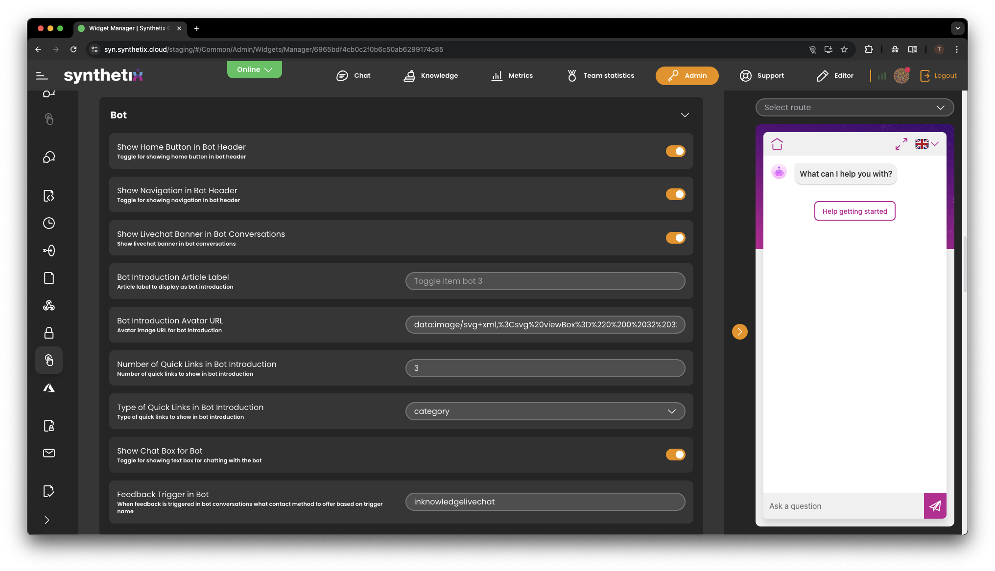 The new Admin section also gives you control over how the chatbot behaves.