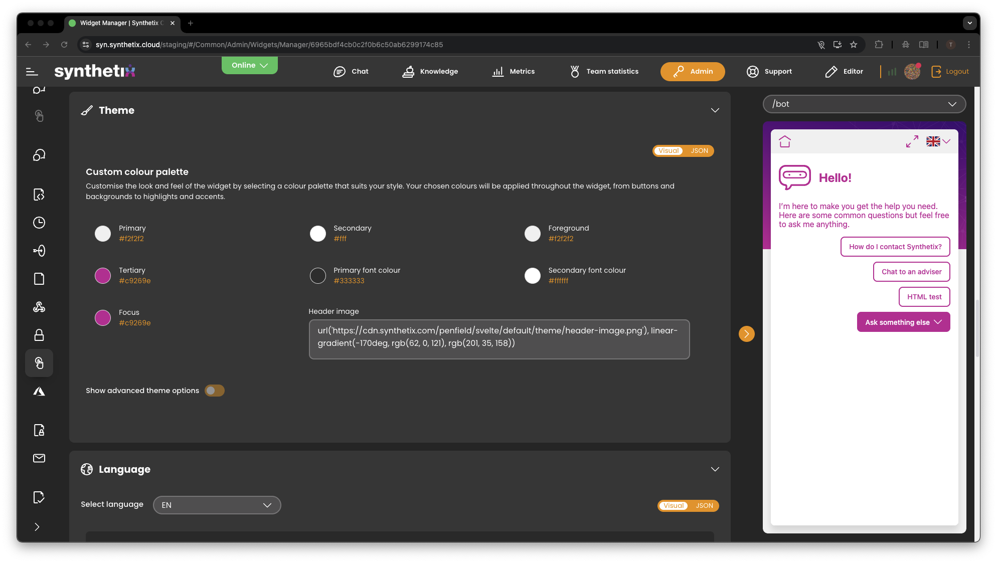 You can now manage your SynthetixJS web widgets from a dedicated Admin section.